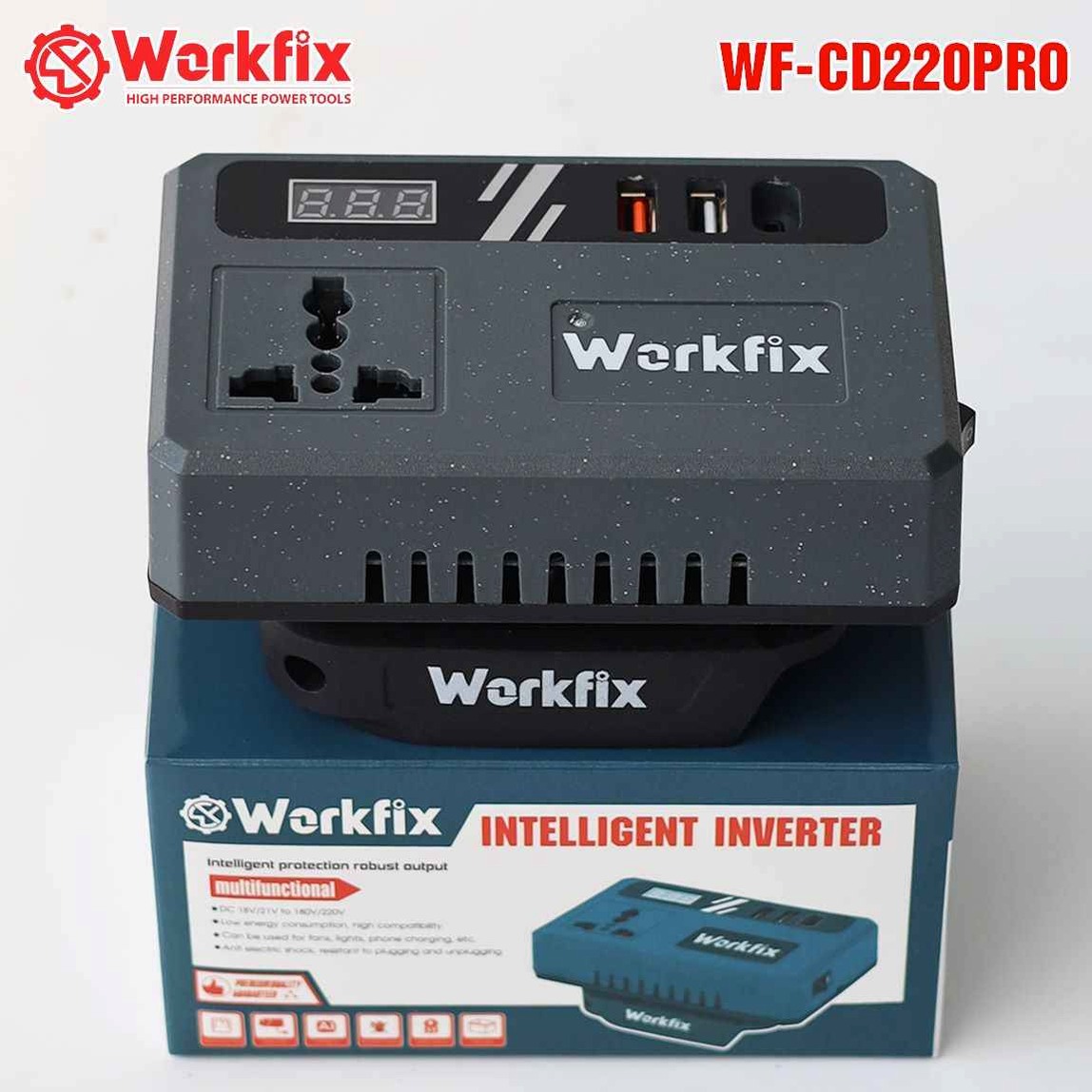 Bộ chuyển đổi nguồn biến tần thông minh Workfix WF-CD220PRO - 12V/21V/24V sang 220V (Sóng Sine mô phỏng)