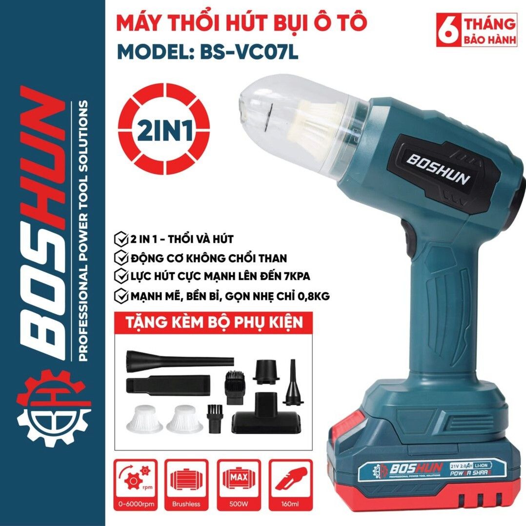 MÁY THỔI HÚT BỤI BOSHUN BS-VC07L HÚT THỔI BỤI OTO, BÀN LÀM VIỆC GA GIƯỜNG, LỰC HÚT 7000PA
