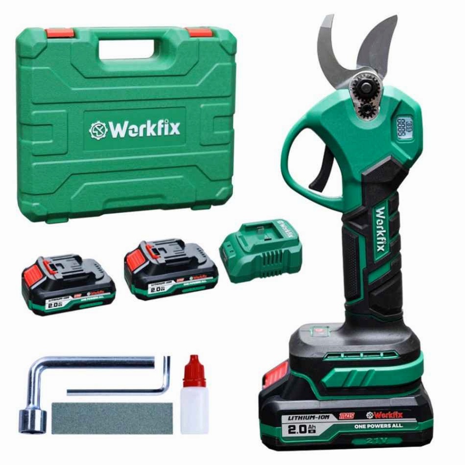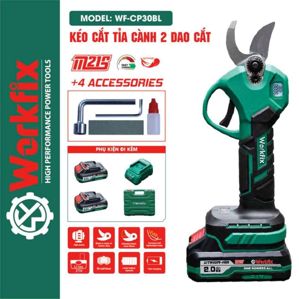 Kéo cắt cành pin Workfix WF-CP30BL (Lưỡi thép SK5) - Có màn hình LED