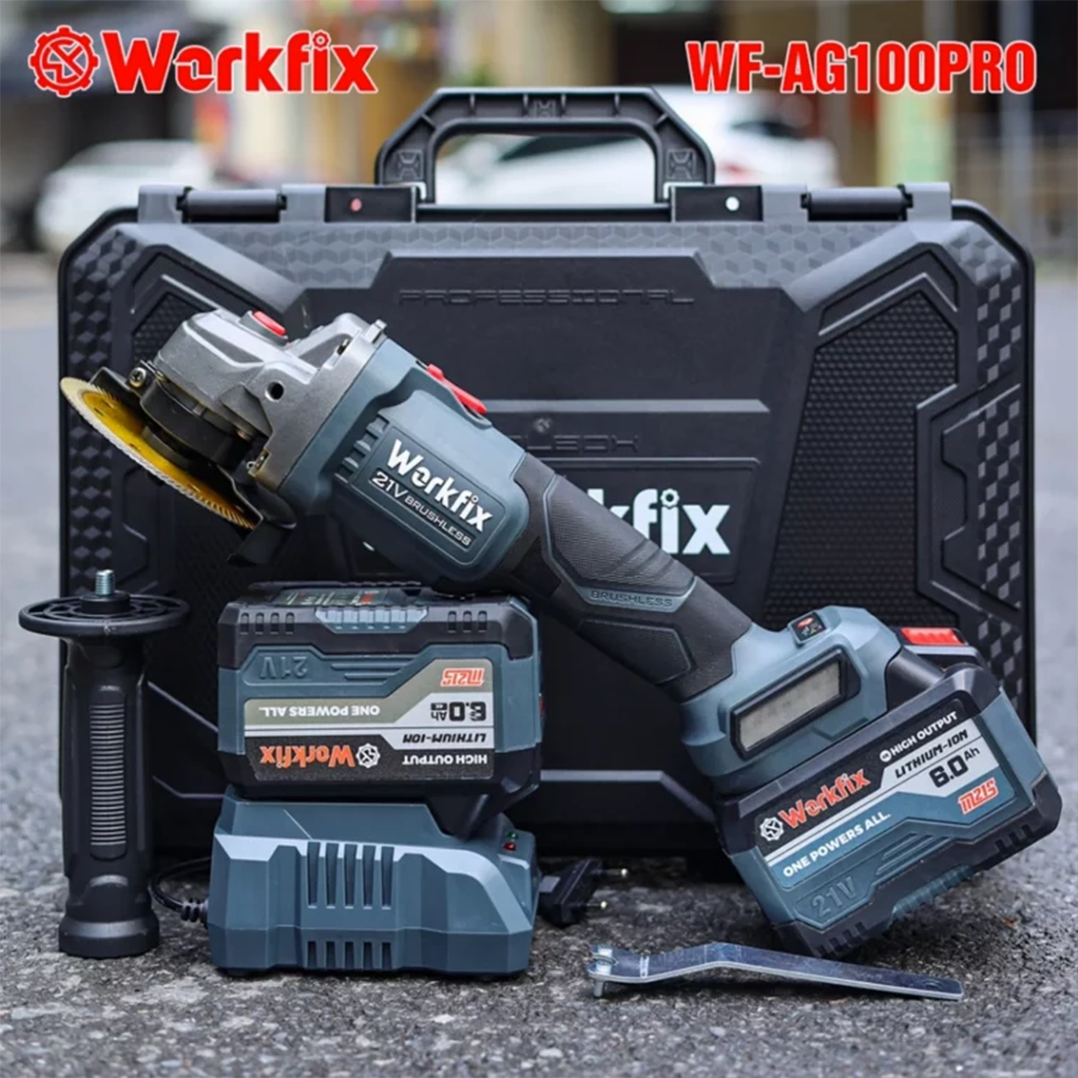 - AG100PRO là một sản phẩm đến từ thương hiệu WORKFIX - thương hiệu dụng cụ pin cầm tay uy tín. Với chất lượng cao cấp và thiết kế thông minh. AG100PRO chắc chắn sẽ là một sản phẩm lý tưởng cho mọi người.